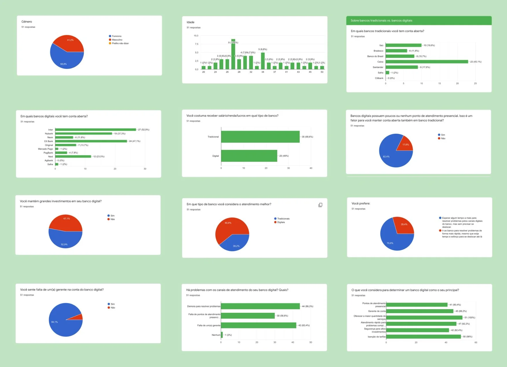 Complementando o questionário, entrevistas foram conduzidas fundamentadas em dados sobre comportamento e características demográficas dos participantes, assim como suas histórias pessoais, motivações, objetivos, desafios e preocupações.