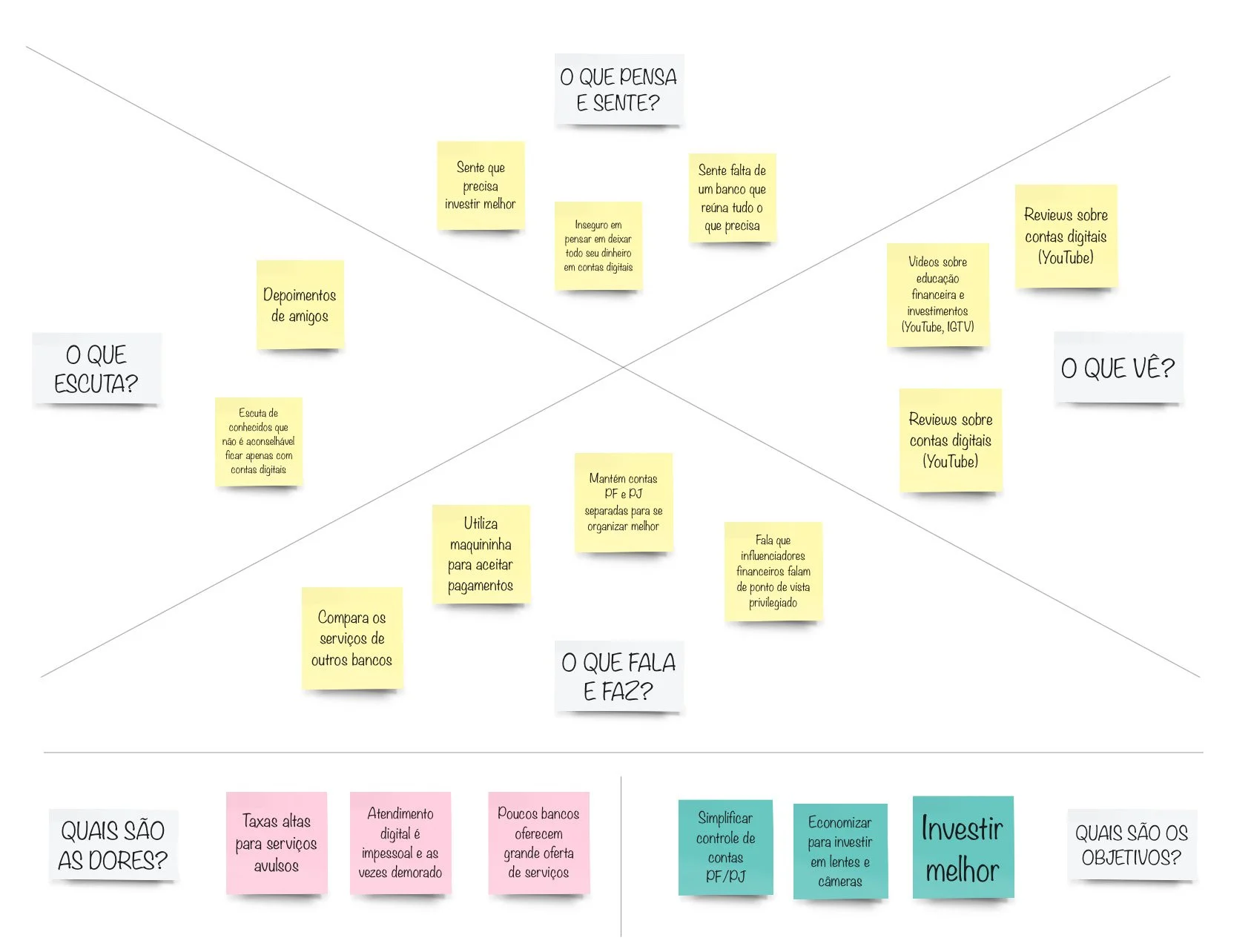 Através dos mapas de empatia compreende-se cada segmento de clientes de uma forma visual, estabelecendo hipóteses claras a respeito das necessidades, comportamentos e outros atributos das pessoas e/ou organizações atendidas por um determinado modelo de negócio.
